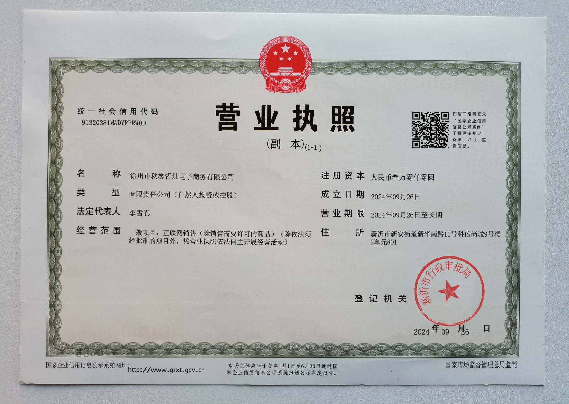 Corporate name:Xuzhou Qiuwuzhecan E-commerce Co., Ltd.